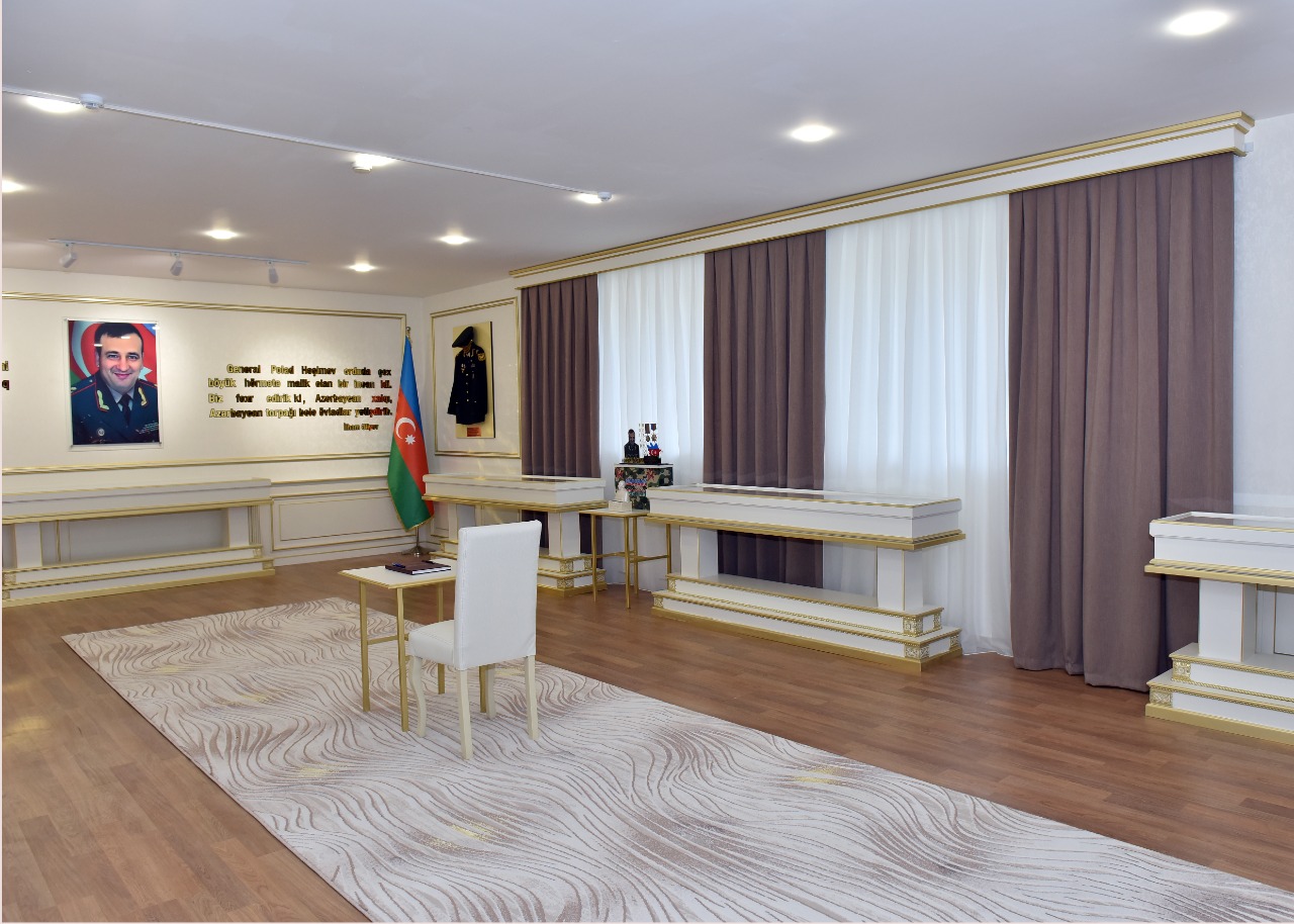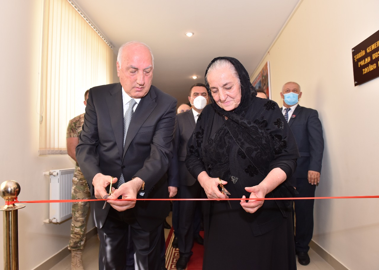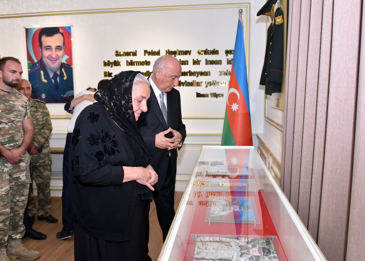 Sonra xatirə muzeyinin rəmzi açılışını bildirən lenti kəsilib, tədbir iştirakçıları muzeylə tanış olublar. Muzeydə şəhid general-mayor Polad Həşimovun uşaqlıq və hərbi xidmətdə olduğu dövrə aid olan fotolar, şəxsi əşyaları, sənədlərin surətləri, kitablar nümayiş olunur.