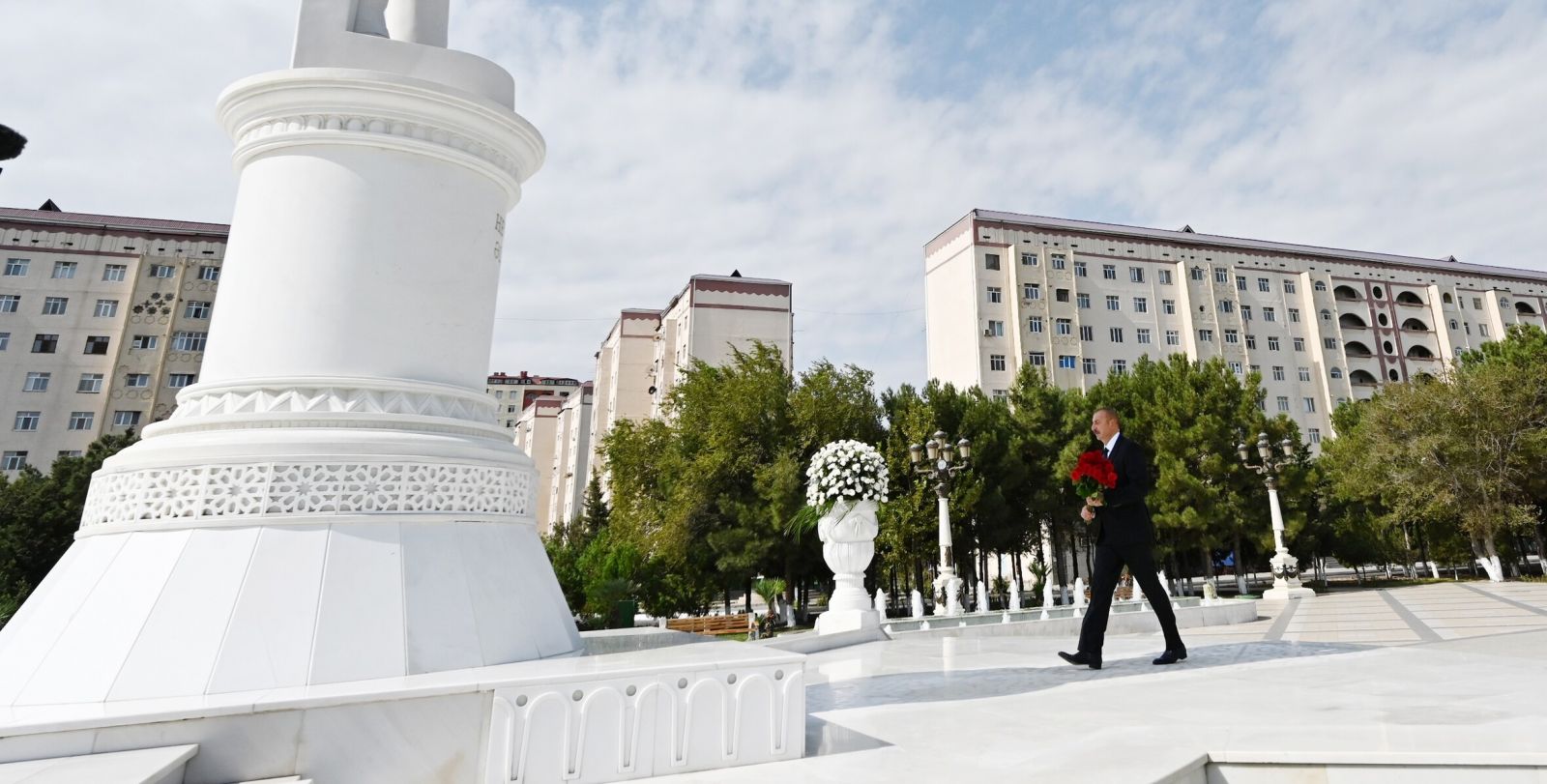 İlham Əliyev Sumqayıtda ulu öndər Heydər Əliyevin abidəsini ziyarət edib